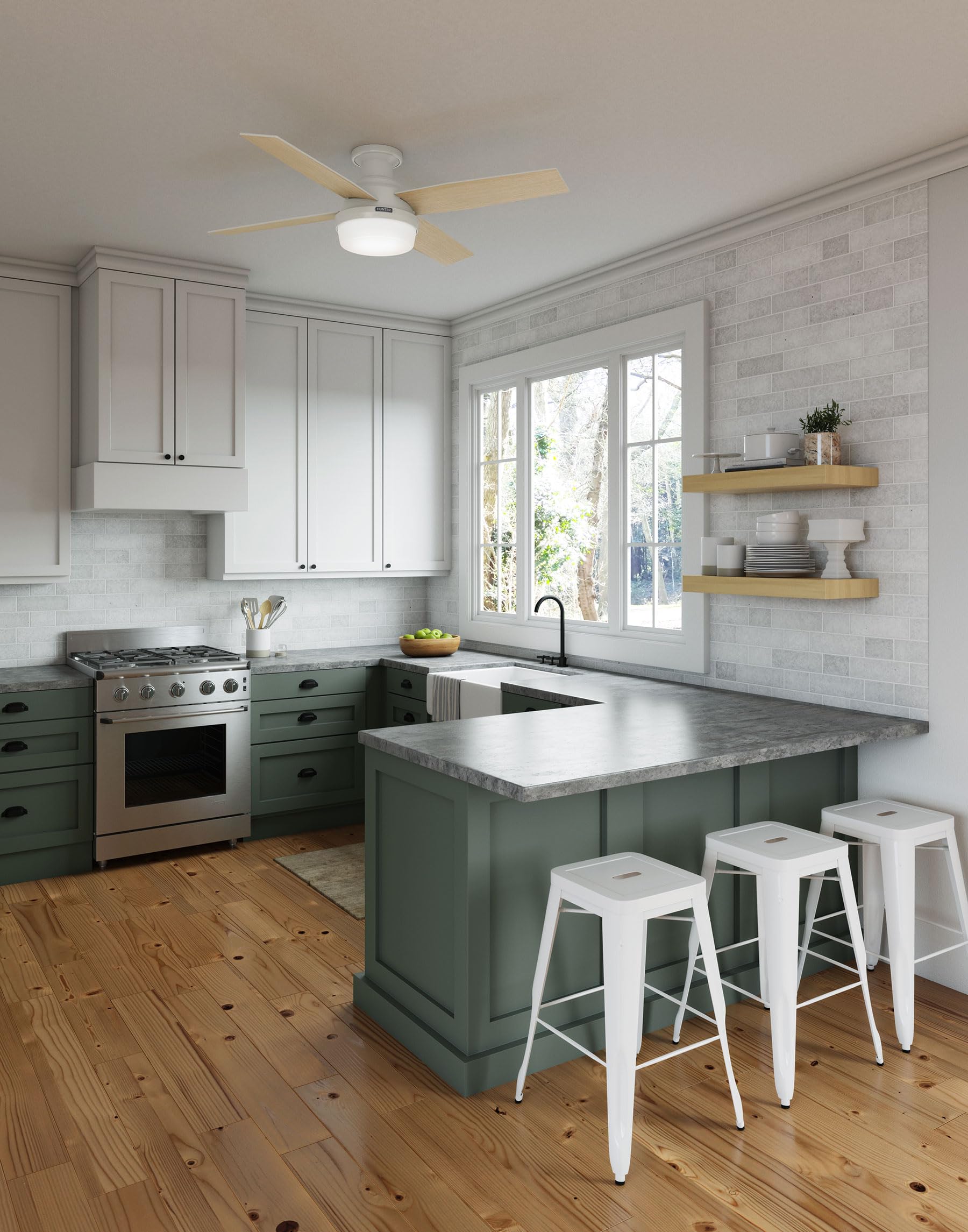 Hunter Fan Company Hunter 59242 Dempsey Deckenventilator für den Innenbereich, niedriges Profil, mit Licht, Weiß