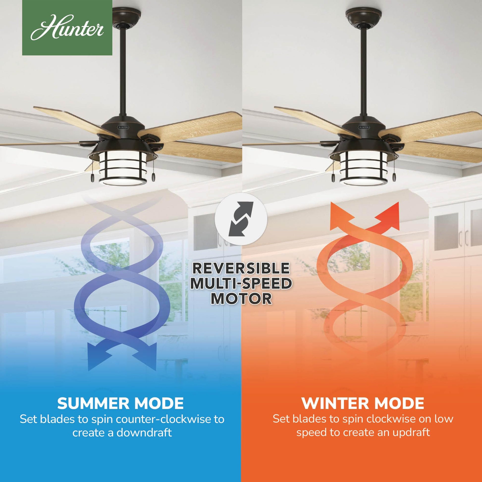 - MULTI-SPEED REVERSIBLE FAN MOTOR: Whisper Wind motor delivers ultra-powerful airflow with quiet performance; Change the direction from downdraft mode during the summer to updraft mode during the winter