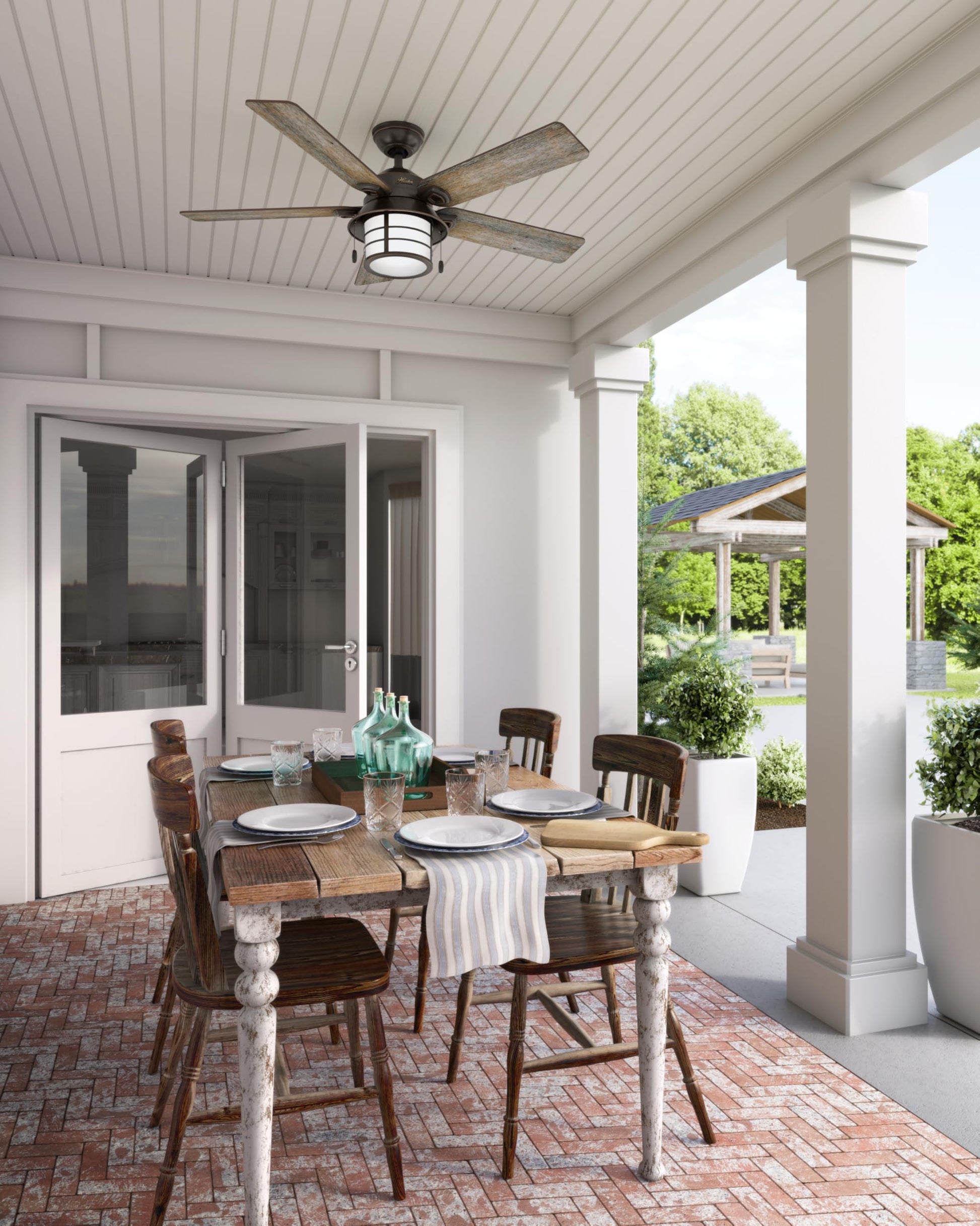- ROOM PLACEMENT: Indoor/outdoor fan is height adjustable, via the included 3" and 2" downrods, to ensure proper distance from the ceiling and optimize air movement; Damp-rated for use in covered porches, patios, sunrooms, living room, and bedroom