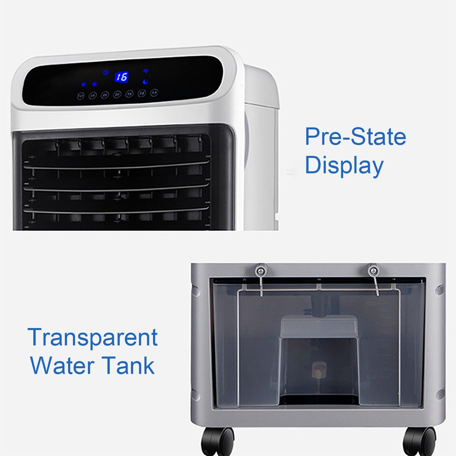 - 【Großer Wassertank】: Der Luftkühlventilator verfügt über einen großen Wassertank, der für mehrere Stunden kontinuierliche Kühlung ohne häufige Nachfüllungen sorgt, mit einer sichtbaren Wasserstandsanzeige für zusätzlichen Komfort