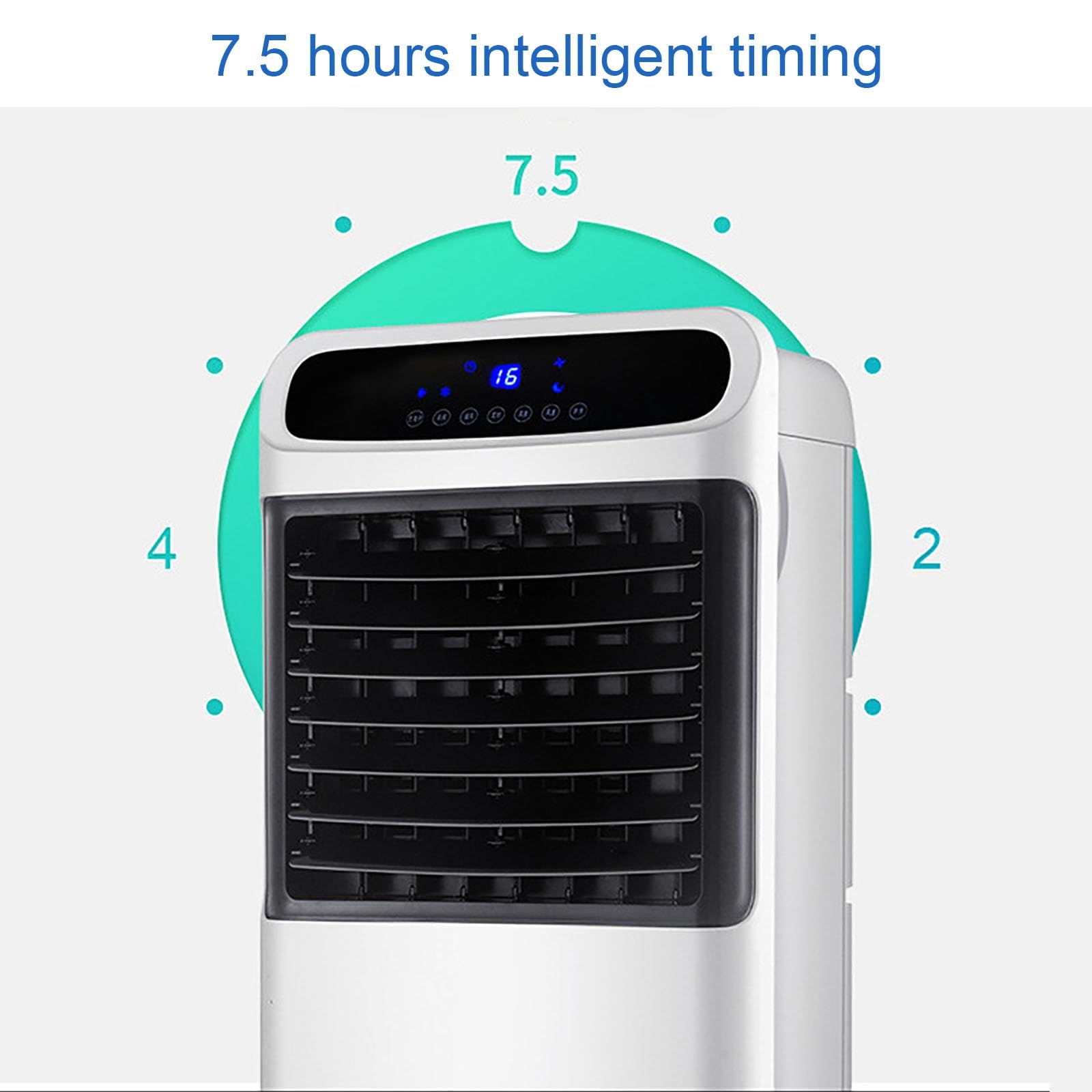 Ruhiger Kaltluftventilator, Schwingender Kühlgebläse mit Großer Wassertank, Lüfterkühler mit Fernbedienung, 7,5-Stunden-Timer